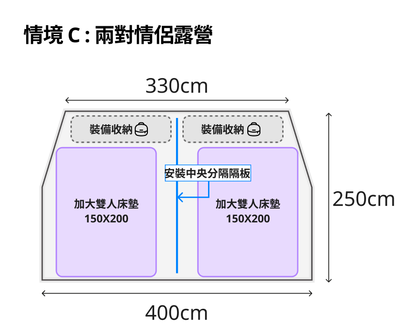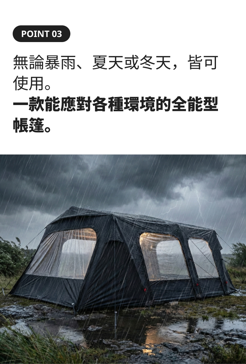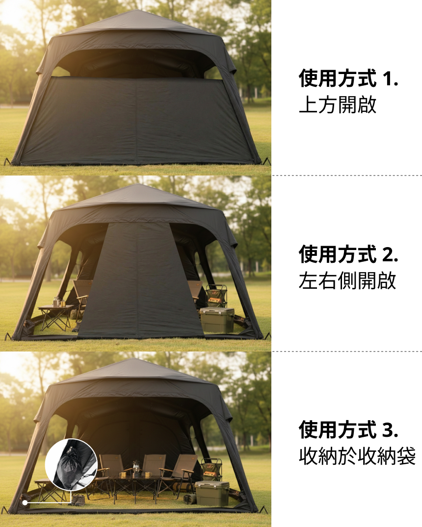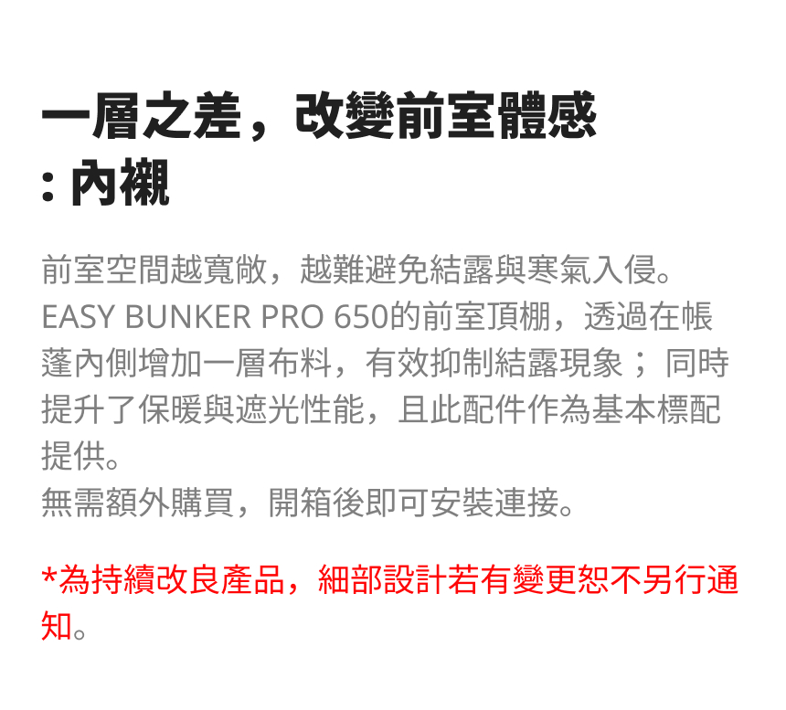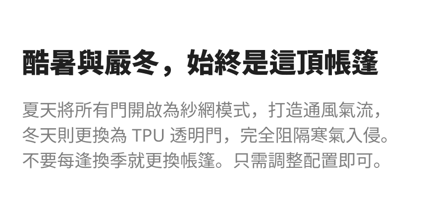加購商品:TPU掛窗(前門/側門)、內帳+專用地墊、地布、延伸帳+紗門