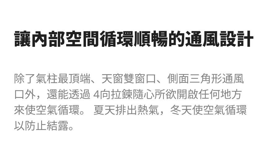 -請勿在帳篷這種密閉空間內使用火源等產品,可能引發火災或一氧化碳中毒等重大危險。
