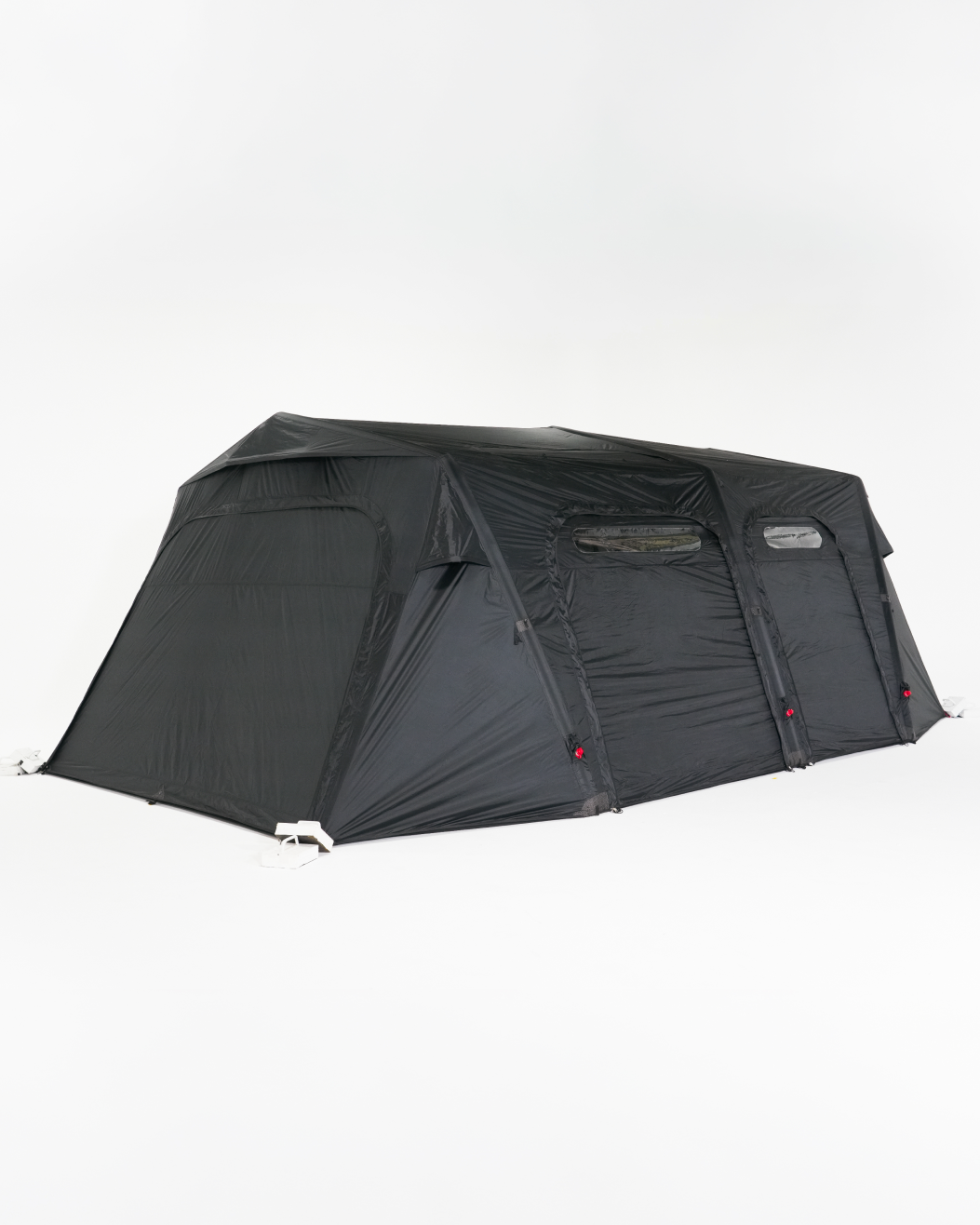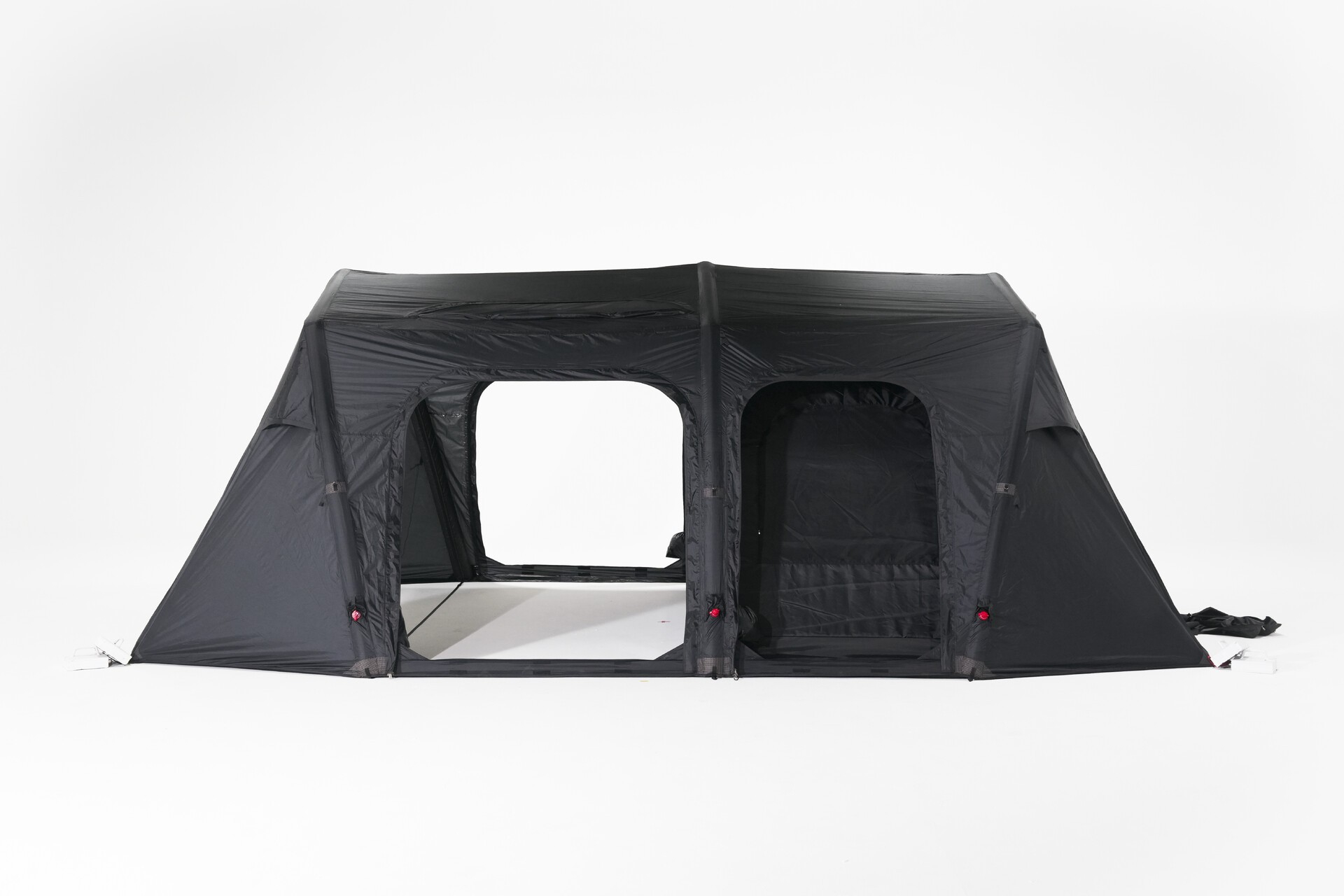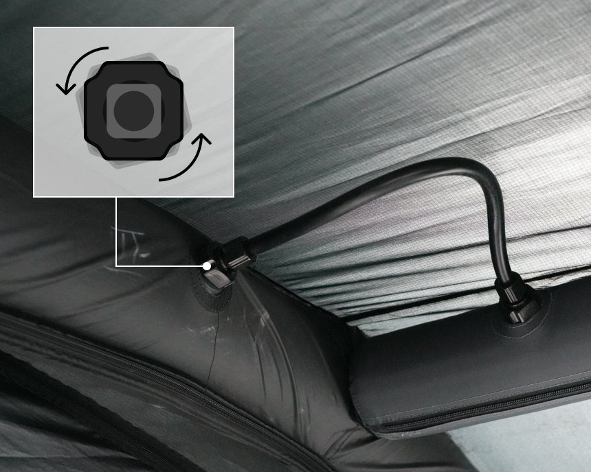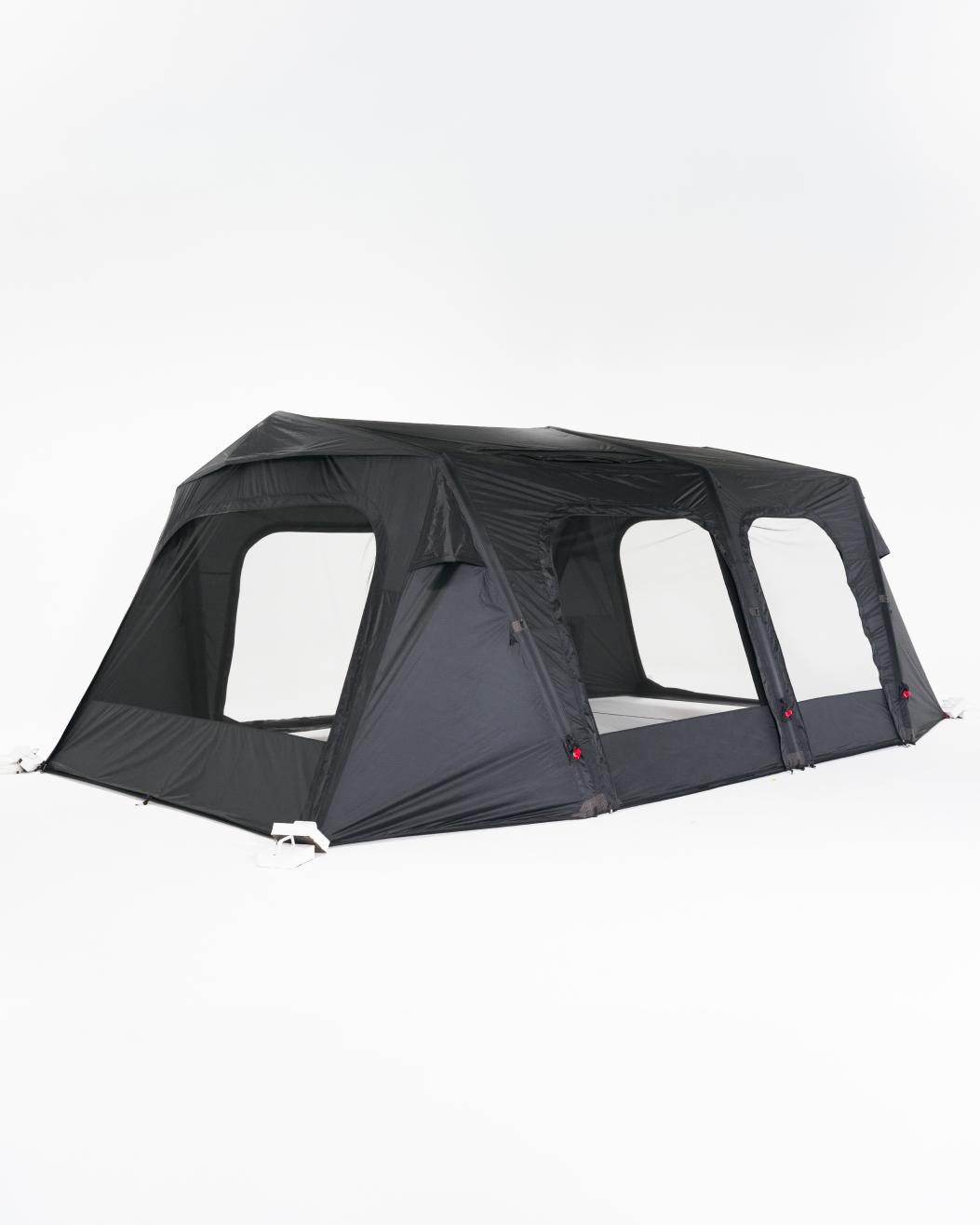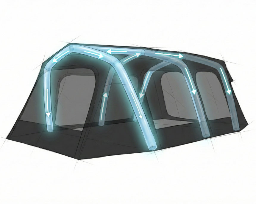 基本配件 : 主帳 / 營釘*12 / 收納袋 / 營繩*6組(已預先安裝於帳篷上) /充氣幫浦 / 前側及側面紗門 + 收納袋 / 頂布 / 頂部支撐鋁合金營柱 / 內襯 / 修補包