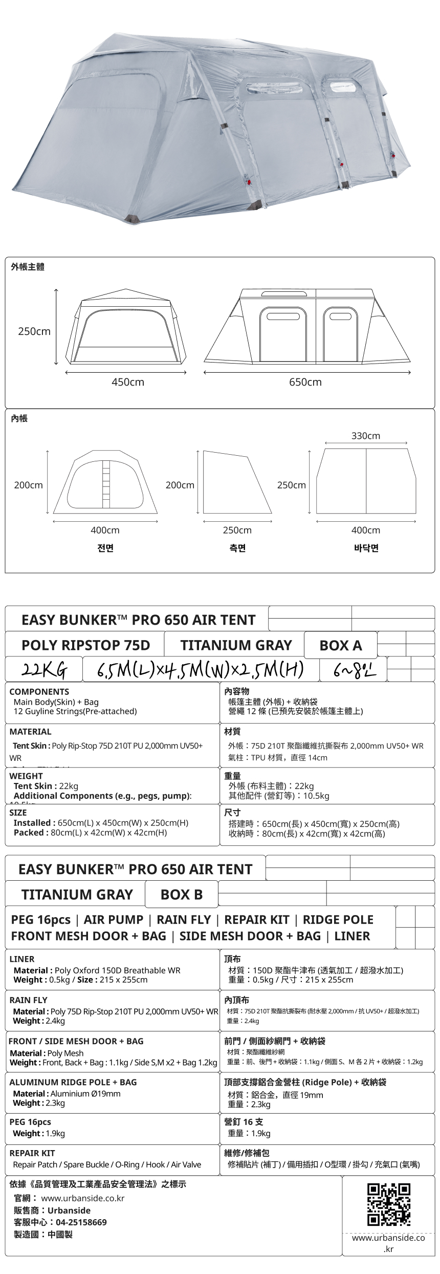 產品名稱 : URBANSIDE EASY BUNKER PRO 邦克650充氣帳