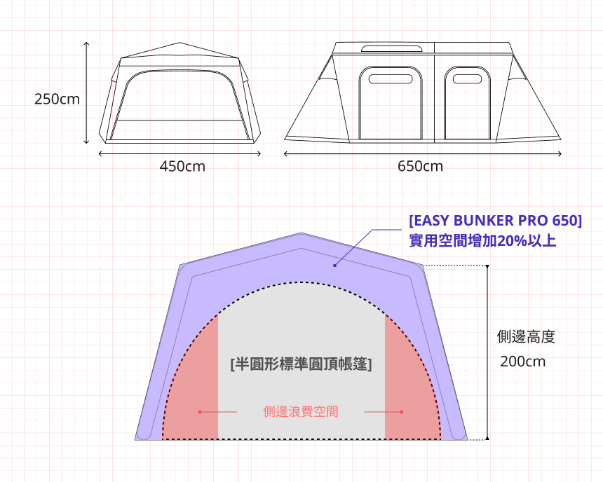 搭設時:650cm(長) x 450cm(寬) x 250cm(高)