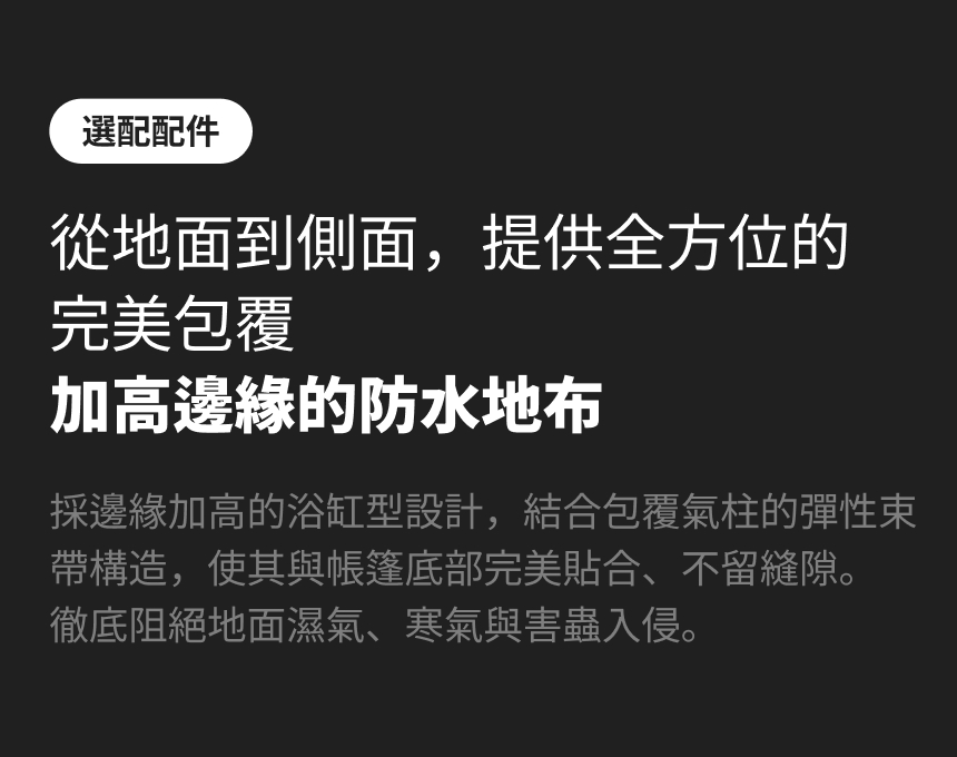 -請勿在帳篷這種密閉空間內使用火源等產品,可能引發火災或一氧化碳中毒等重大危險。