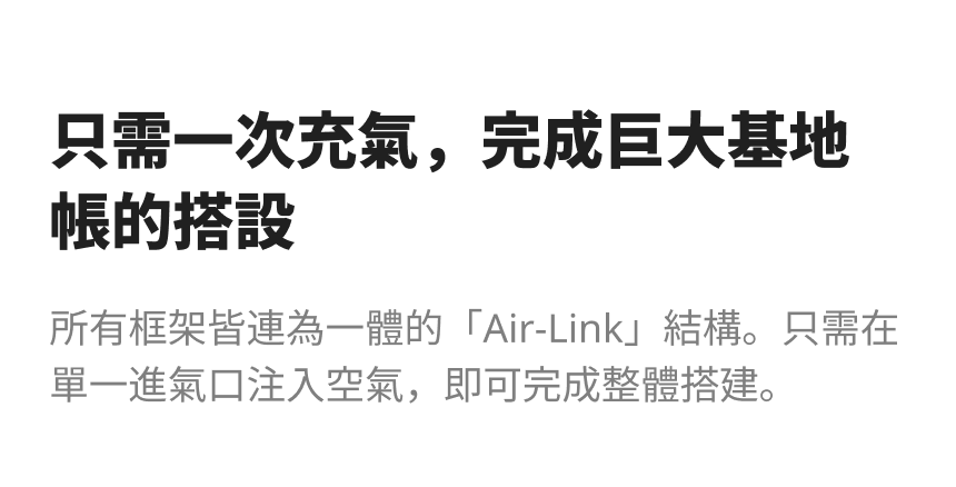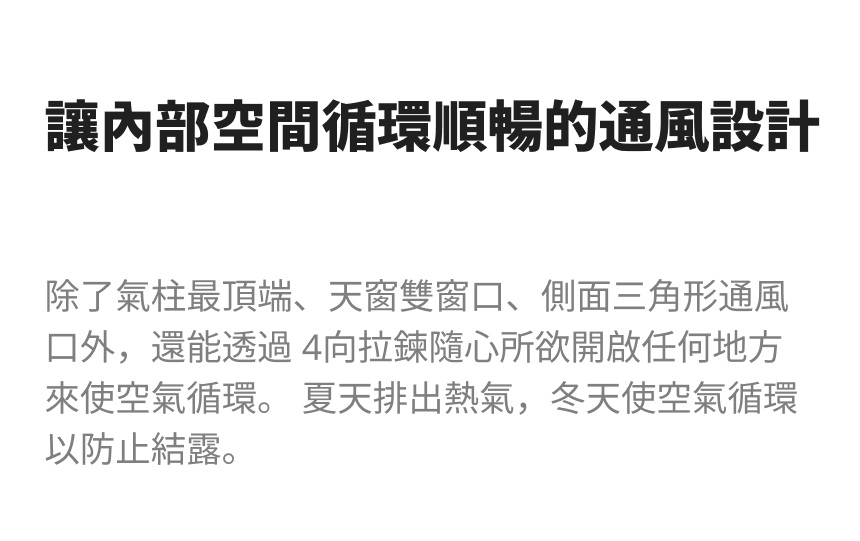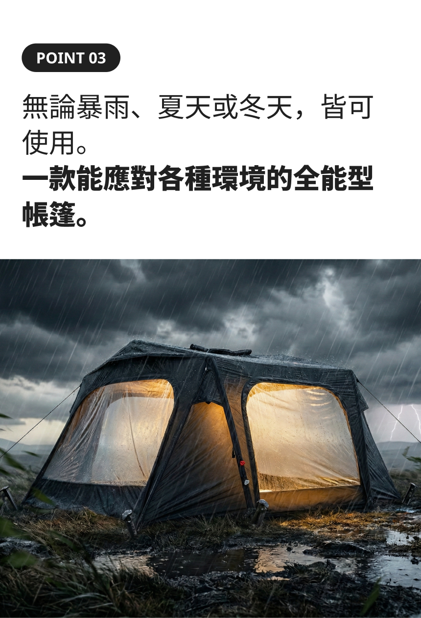 -請勿在帳篷這種密閉空間內使用火源等產品,可能引發火災或一氧化碳中毒等重大危險。
