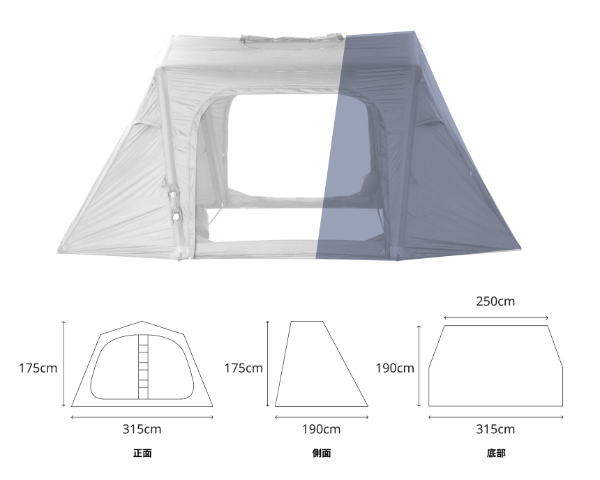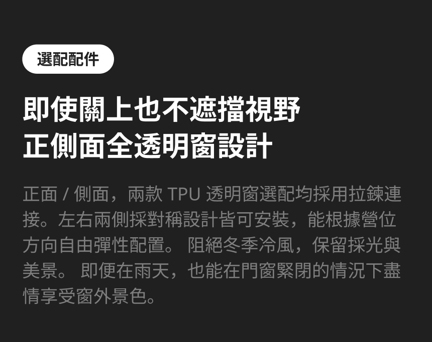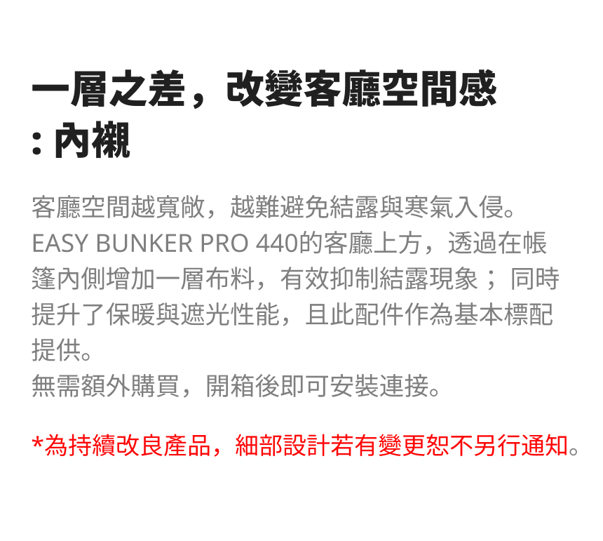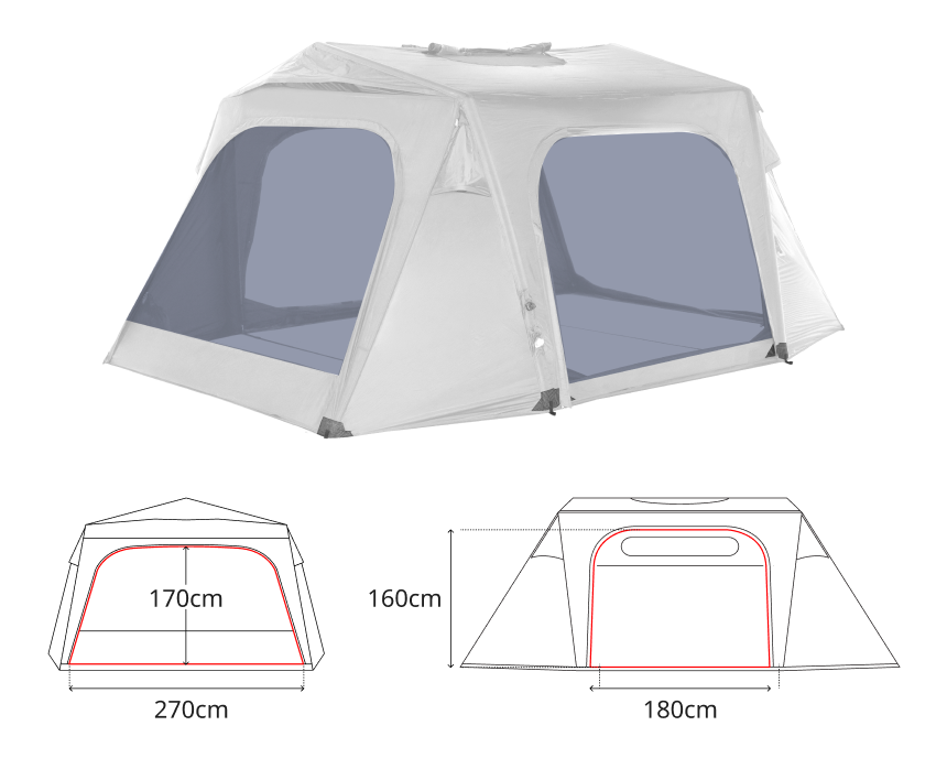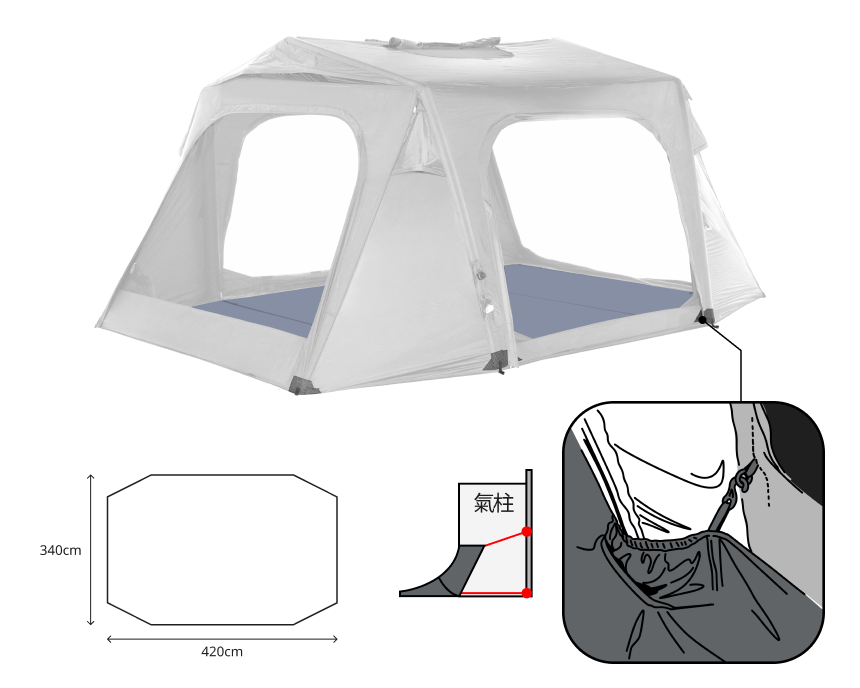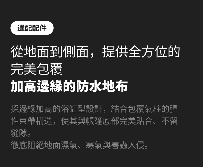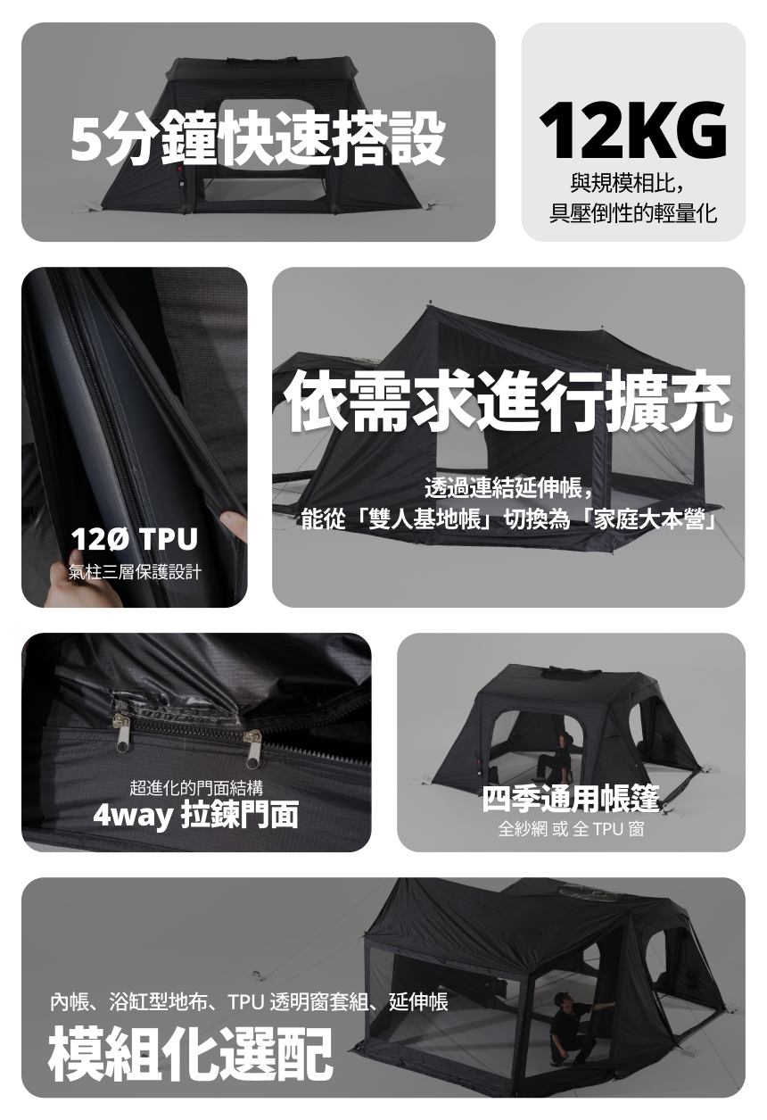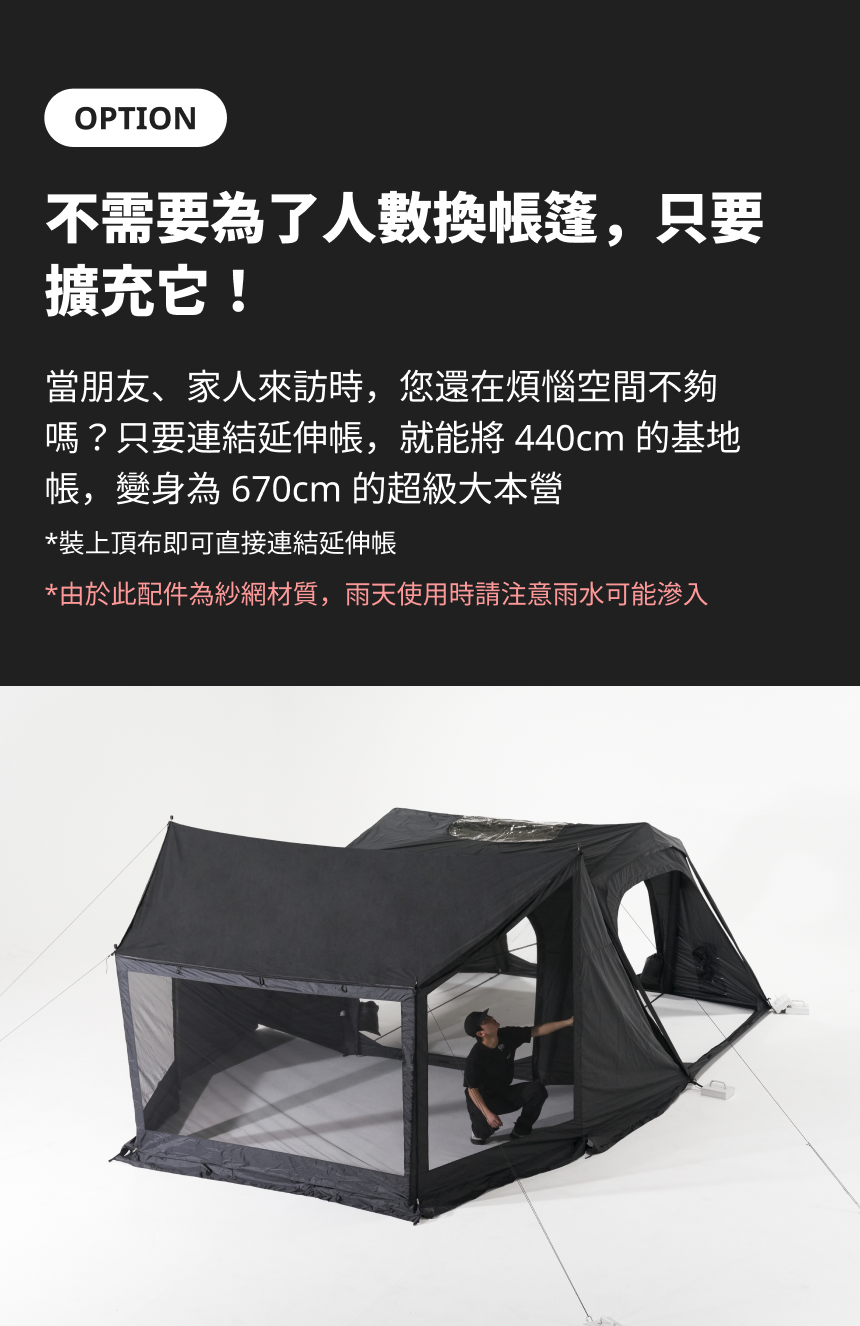 加購商品:TPU掛窗(前門/側門)、內帳+專用地墊、地布、延伸帳+紗門