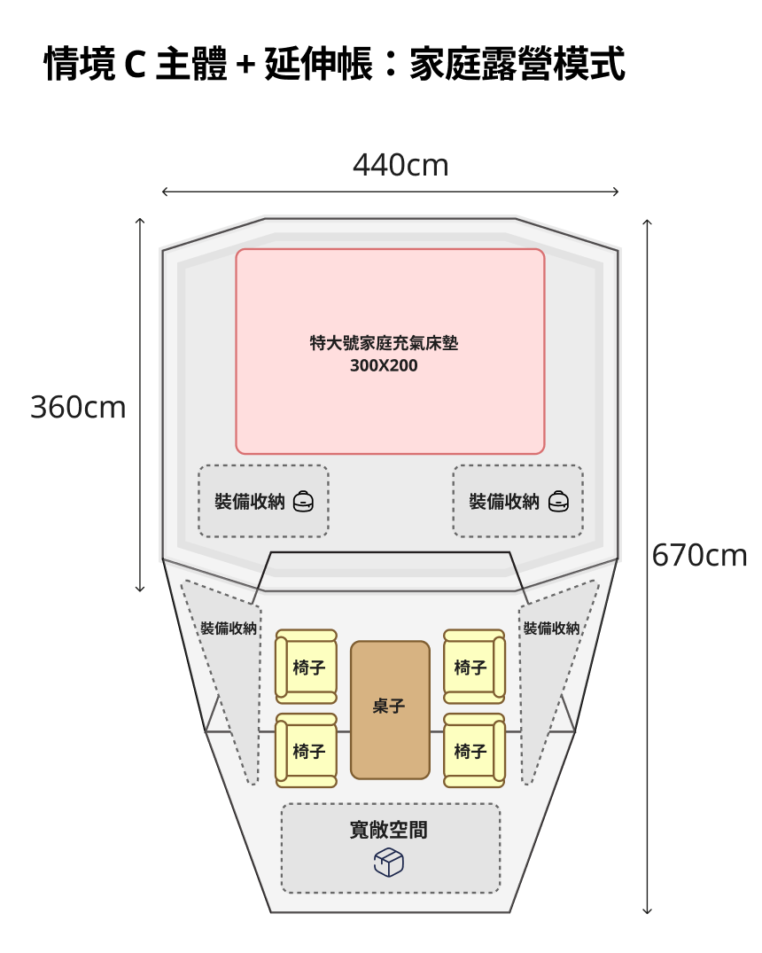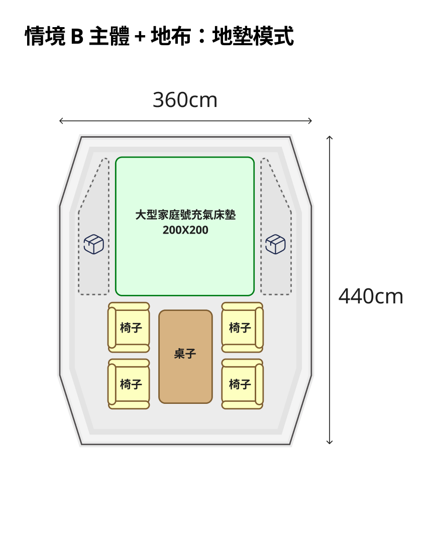 尺寸 : 440cm(L) x 360cm(W) x 200cm(H)