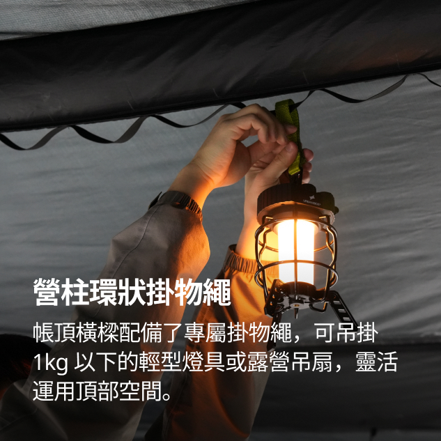 -請勿在帳篷內使用以燃燒為方式的燈具、暖爐等爐具,或蠟燭、打火機、焚火台等明火裝置。