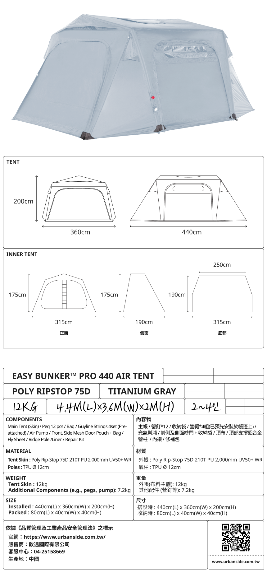產品名稱 : URBANSIDE EASY BUNKER PRO 邦克440充氣帳
